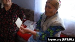 «Mayıs 18 künü, 44 senesi. Tañ vaqtı. Qapunı qaqalar. Anam yanıma kelip ayta: «Abibe, qızım, anda birisi keldi». Biz onıñnen beraber çıqtıq, anda ise askerler avtomatlarnen tura. Evge kirip, er şeyni darma-dağın ettiler, bir şey qıdırdılar. Neni qıdırdılar, öyle de añlamadıq. Soñra – toplanıp evden çıqmağa ayttılar. Üstümizde ne bar edi – öyle de azbarğa çıqtıq. Şu daqqası babamnıñ cebeden kelgen mektüplerini oquğan askerlerden biri anama urba alıñız dedi. Anam ise oña cevap bere: «Urbağa ne kerek bar. Bizni köyden çıqarıp, qurşunğa tizeceksiñiz, yeudiylerge böyle yapılğan edi». Soñra asker tez-tez evge kirip, üç yorğannı aldı ve anama berdi, bizni uzun yol beklegenini ayttı», – ağlap ayta Abibe apte.